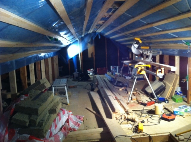 I started this project sommer 2011, the goal was to build a gamingloft room on the upperfloor. Until now the upperfloor has been a cold loft and havn’t been used at all. The primary goal is to finish the upperfloor and have two rooms, one storage room and one room as entertainment room. The entertainment room is gonna be used as gaming, movie and work room.
