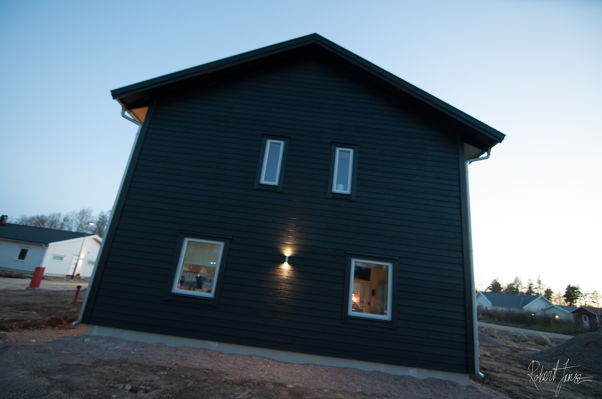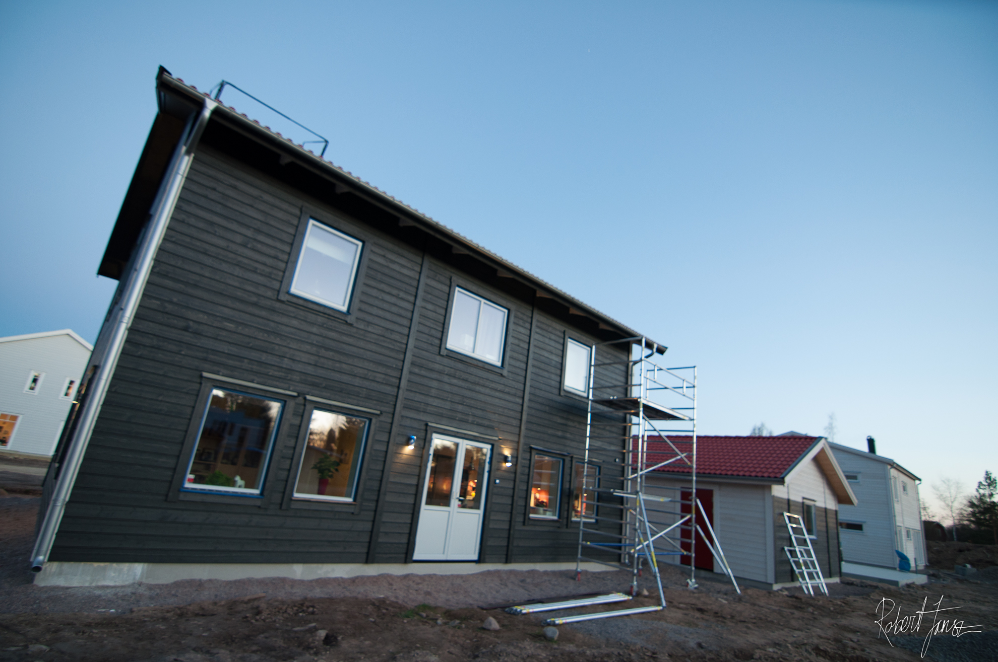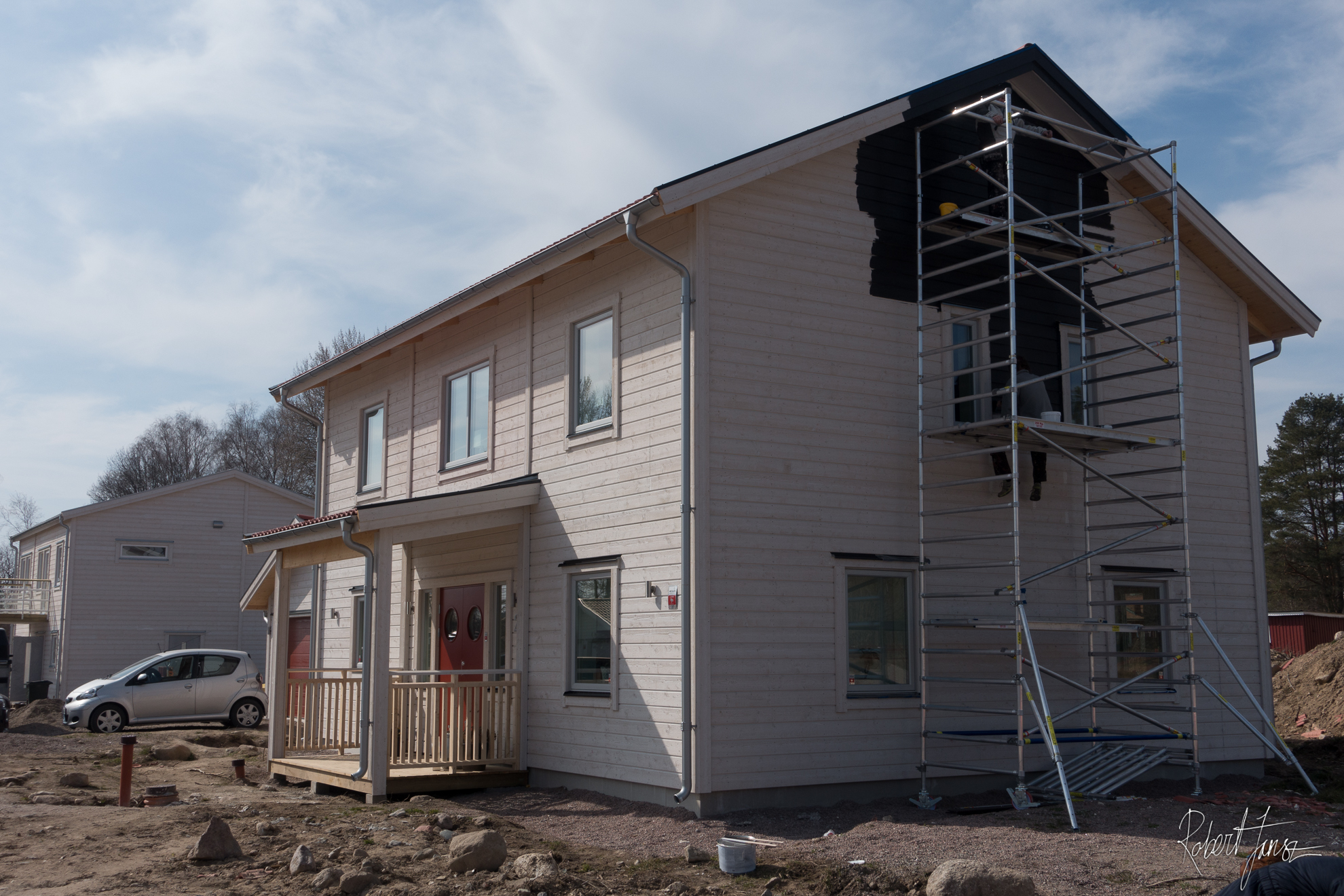 Today we began to paint the house with the dark color s8500n. It tooked over 150 litres with tree layer color to get the house and garage coverd enough. Two painters painted the house within tree weeks with full work time, aproximate 160 hours total to get the job done.