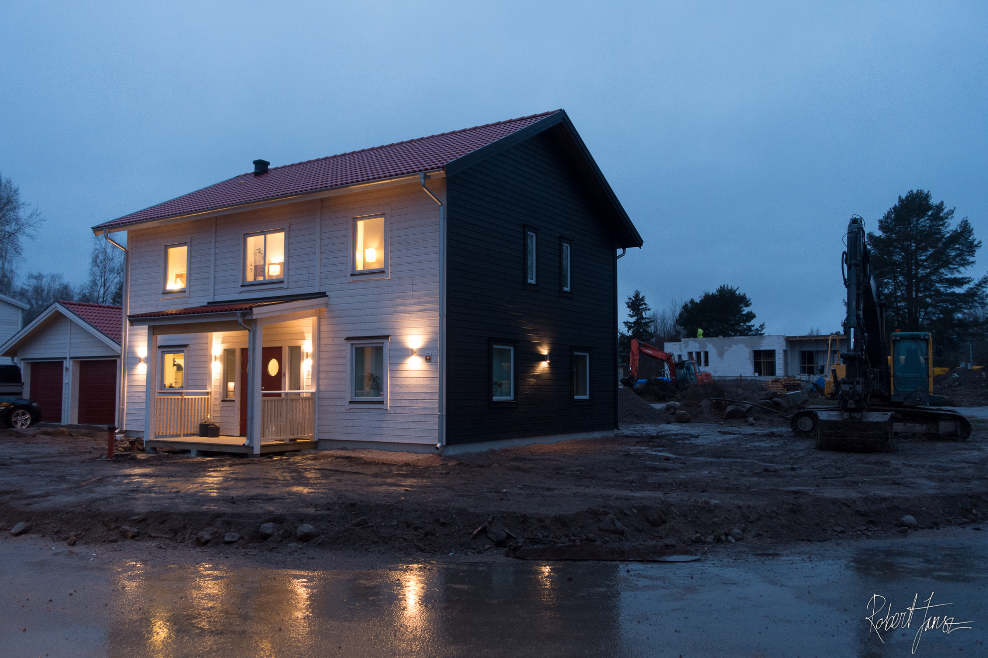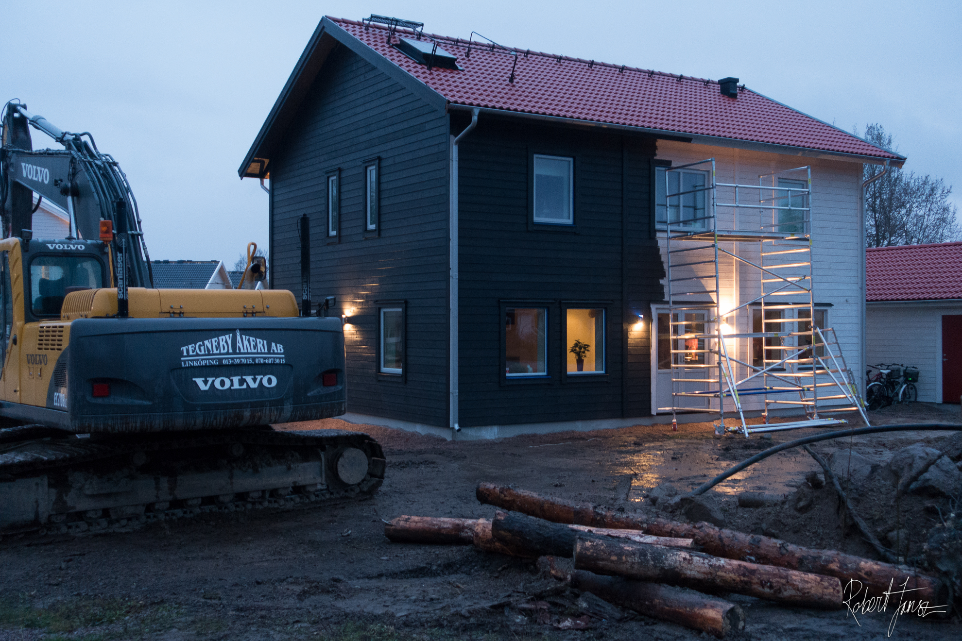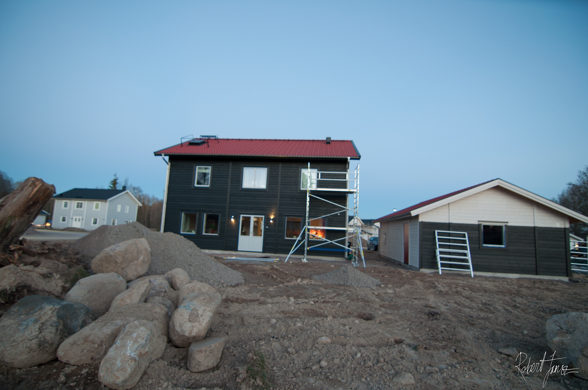 Today we began to paint the house with the dark color s8500n. It tooked over 150 litres with tree layer color to get the house and garage coverd enough. Two painters painted the house within tree weeks with full work time, aproximate 160 hours total to get the job done.